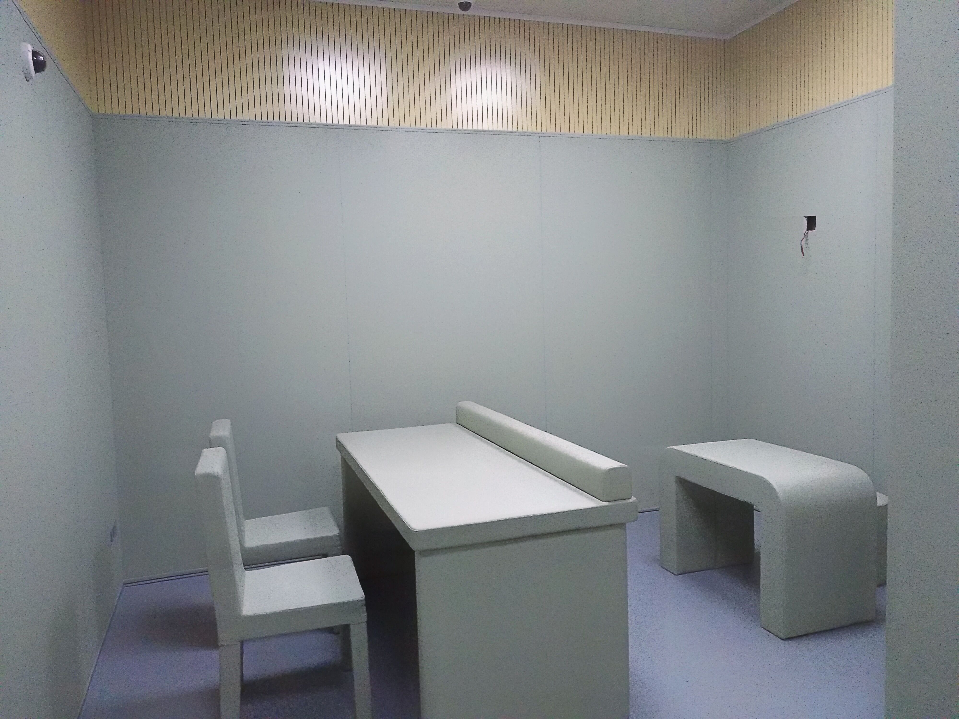 (1)為防止因被審訊(訊問(wèn))人因發(fā)生碰撞而造成意外,審訊臺(tái)審訊椅都要進(jìn)行軟包或圓角處理,不能有尖銳突出角。