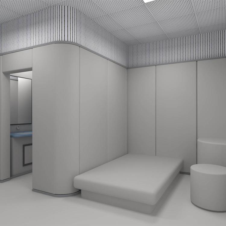 在審訊室內(nèi),設(shè)置獨(dú)立衛(wèi)生間,是采用軟包覆蓋,采用軟質(zhì)硅膠防撞洗手臺(tái)、硅膠防撞蹲便器。在留置區(qū)內(nèi)部,設(shè)置軟包防撞桌椅,方便審訊談話所用,還會(huì)設(shè)置人性化的暗藏式床,可嵌入墻體設(shè)計(jì),有可拉伸的帶子。