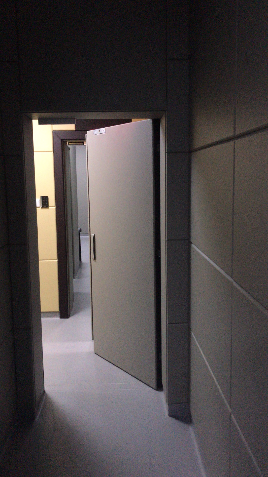 先做地面和吊頂,地面可用塑膠地板,吊頂可參考用玻纖天花板(A級防火,吸音材料);墻面可使用平整光潔可粘木工阻燃板(一般可用9mm)作為底板,一般室內(nèi)的墻有灰塵或者不夠平整,我們建議是打一層木工底板,中纖板,普通版都可以,當(dāng)?shù)亟ú氖袌鼍涂梢越鉀Q。