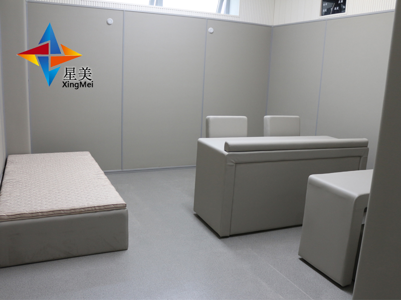 星美建材生產(chǎn)的防撞阻燃吸音材料專業(yè)為派出所審訊室、公安局辦案區(qū)、紀(jì)檢委談話室、詢問室、檢察院訊問室、看守所關(guān)押室、交警大隊(duì)訊問室、特審室、信息采集室、紀(jì)委審查室、禁毒支隊(duì)、拘留所等執(zhí)法部門量身打造集防撞、阻燃、吸音為一體的防自殘、防磕碰的保護(hù)性墻面,能很好保護(hù)嫌疑人出現(xiàn)自殘、撞墻自殺等行為。