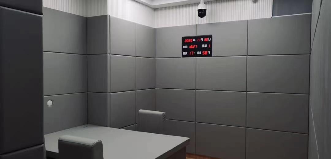 基礎(chǔ)材料由吸音防火棉組成 ,外包材是一種經(jīng)過(guò)B1級(jí)阻燃處理的皮革或布料 ,常規(guī)尺寸為常規(guī)尺寸2.5公分厚度常規(guī)尺寸:400*800/600*800/600*1200/ 800*1200/600*2400/1200*2400MM5公分厚度常規(guī)尺寸600*1200/600*2400MM,其他尺寸可根據(jù)改造需要規(guī)劃,因?yàn)?/span>基礎(chǔ)材料是纖維狀多孔材料,具有極好的抗壓抗擊性,防碰撞性能 ,許多材料具備防碰撞性能,同時(shí)由于這種無(wú)理結(jié)構(gòu)特性,也使談話(huà)室軟包具有吸音系數(shù)0.95以上的吸音能力 ,可廣泛應(yīng)用于談話(huà)室、審訊室 、辦案區(qū)等場(chǎng)所 。