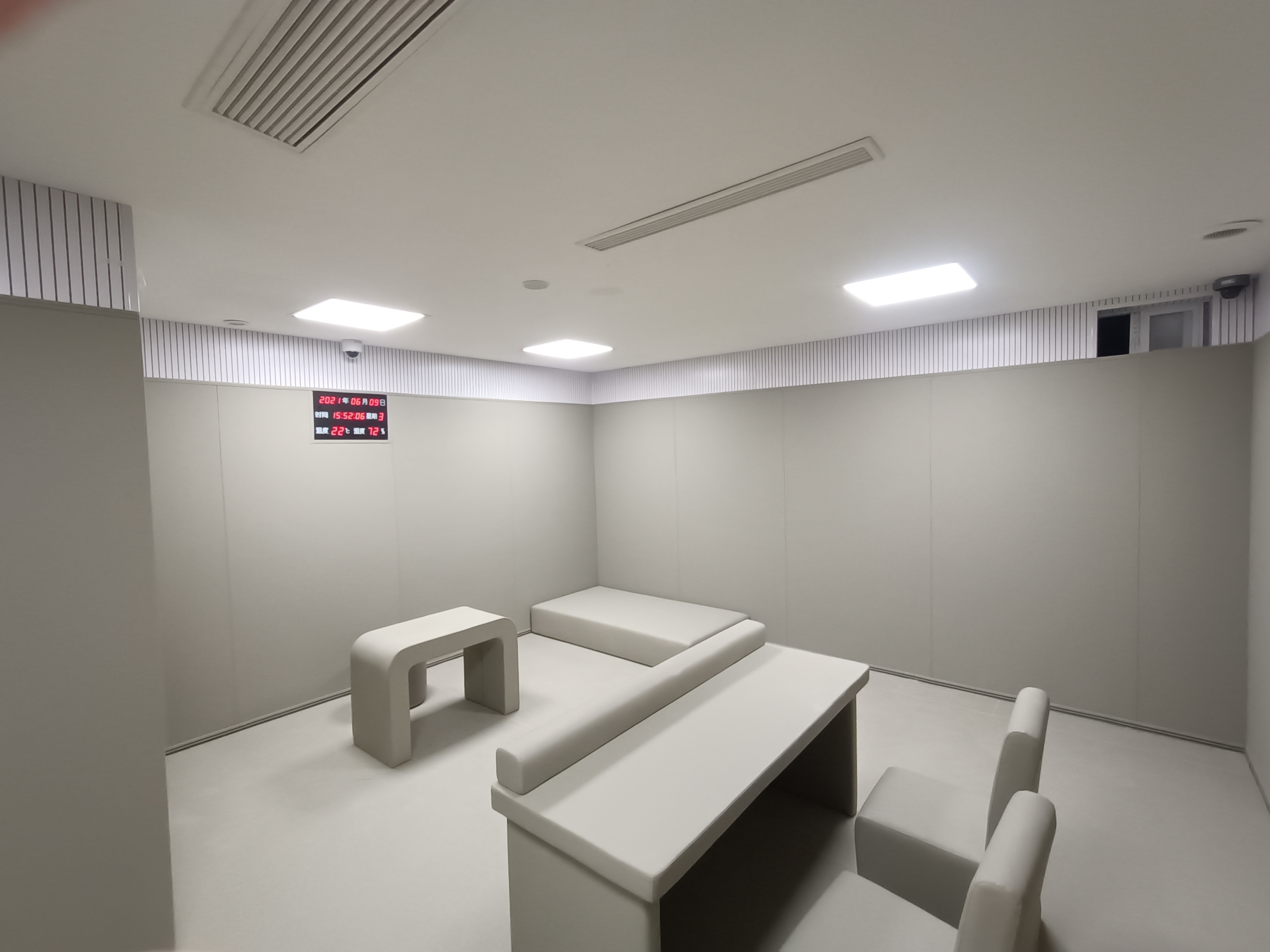 審訊室內(nèi)所能觸及的尖銳物體,硬化物體都需要做防撞防護(hù)。為防止在辦案過(guò)程中,犯人有過(guò)激的行為,選擇自殘或者傷害執(zhí)法人員的情況。需要有三種特性,防火、防撞、環(huán)保這三個(gè)特性顯得尤為重要,符合國(guó)家單位場(chǎng)所的材料標(biāo)準(zhǔn)要求。