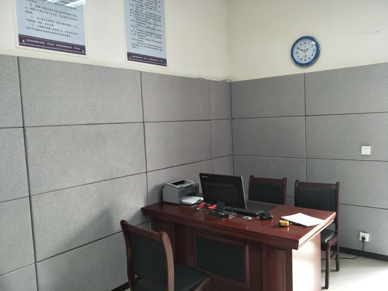 ★產品的厚度可選25mm和50mm,保證可以隔音,保證談話錄音工作順利完成。同時防撞效果好,有效防止在辦案過程出現(xiàn)自殘行為導致的受傷事件。