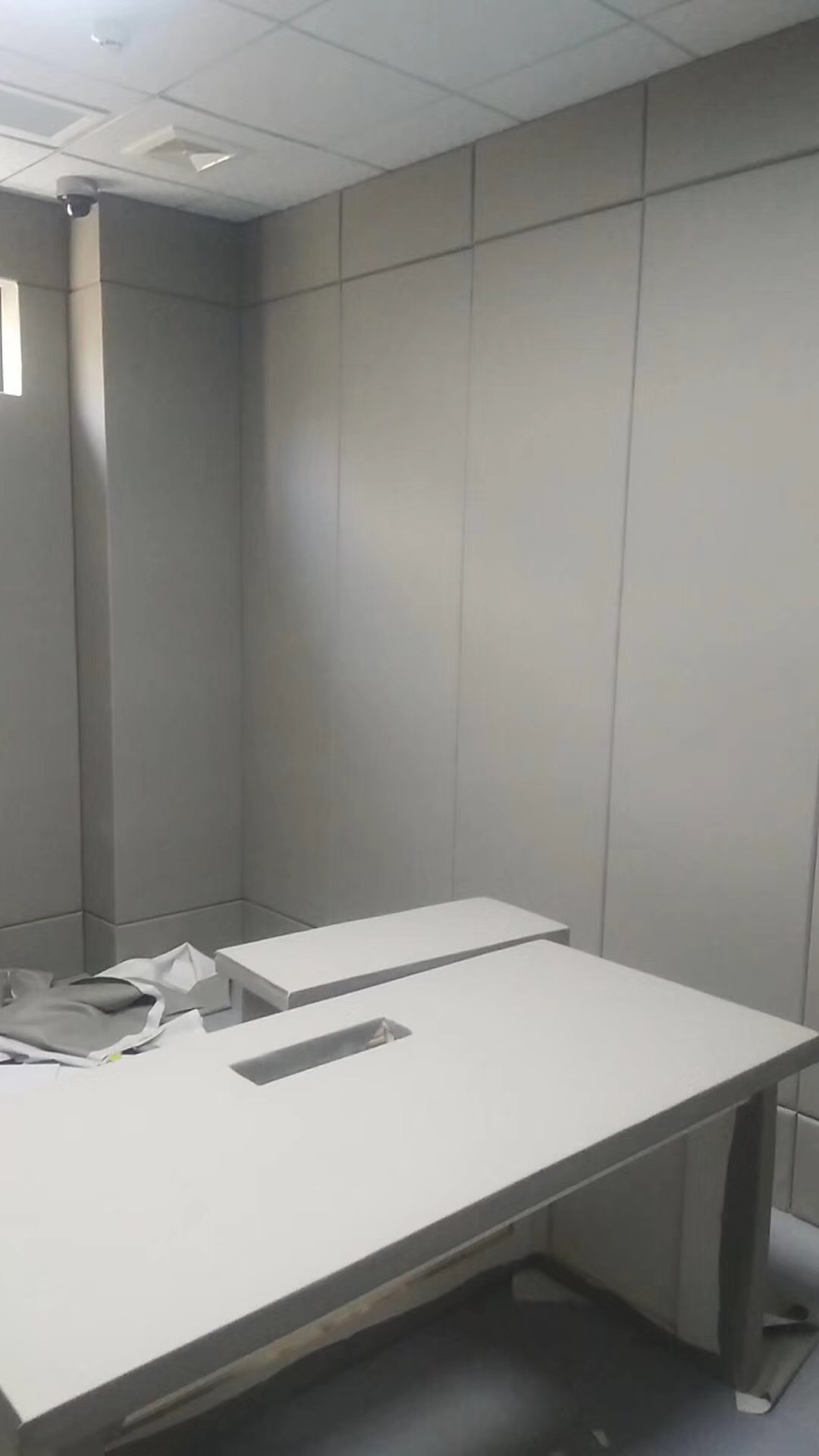 談話室防撞軟包墻系統(tǒng)其核心為環(huán)保型納米棉軟包,標(biāo)配規(guī)格為1250*2450mm,小款尺寸也有600*600,厚度一般做2公分已經(jīng)能夠解決防撞效果的問題,關(guān)鍵是搭配各式壓邊條對墻角,窗臺,門邊等難以防撞軟包覆蓋的地方進(jìn)行解決。與納米棉粘合的是使用了大荔枝紋阻燃皮革,其優(yōu)勢在于耐磨,經(jīng)過機(jī)器摩擦測試十分鐘摩擦5000次,皮革表面無明顯損耗。談話室防撞軟包墻面材料廠家—談話室防撞軟包是按照基材成分劃分的一種墻面獨(dú)特建筑材料,其主要材料有阻燃B1級、環(huán)保E0級的高密度發(fā)泡聚乙烯棉,PU阻燃皮革,其中聚乙烯擠塑棉的特性功能具有防撞、防火、環(huán)保、抗撞擊、回彈性、耐磨耐刮、防水等,作為紀(jì)檢委談話室建設(shè)領(lǐng)域的軟包品種,廣泛應(yīng)用于辦案區(qū)談話時防撞擊損害安全防護(hù)以及室內(nèi)外的噪音吸收。
